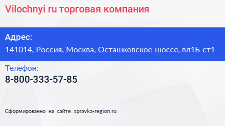 Vilochnyi.ru, торговая компания по адресу 141014, Россия, Москва, Осташковское шоссе, вл1Б ст1 в дальнейшем Организация, размещена в следующих категориях: