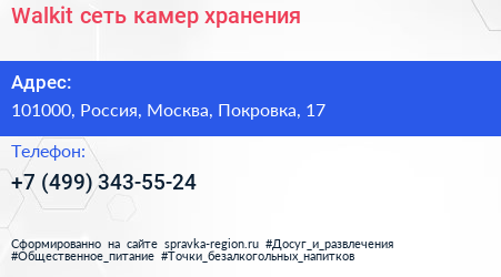 Walkit, сеть камер хранения по адресу 101000, Россия, Москва, Покровка, 17 в дальнейшем Организация, размещена в следующих категориях:
