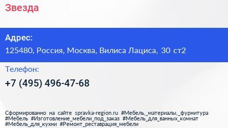 Звезда по адресу 125480, Россия, Москва, Вилиса Лациса, 30 ст2 в дальнейшем Организация, размещена в следующих категориях: