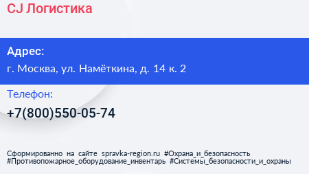CJ Логистика по адресу г. Москва, ул. Намёткина, д. 14 к. 2 в дальнейшем Организация, размещена в следующих категориях:
