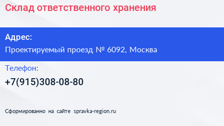 Cклaд oтвeтcтвeннoго хранения по адресу Проектируемый проезд № 6092, Москва в дальнейшем Организация, размещена в следующих категориях: