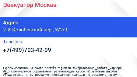 Эвакуатор.Москва по адресу 2-й Колобовский пер., 9/2с1 в дальнейшем Организация, размещена в следующих категориях: