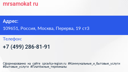 mrsamokat.ru по адресу 109651, Россия, Москва, Перерва, 19 ст3 в дальнейшем Организация, размещена в следующих категориях: