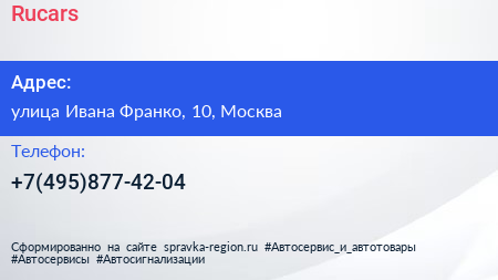 Rucars по адресу улица Ивана Франко, 10, Москва в дальнейшем Организация, размещена в следующих категориях: