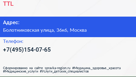 TTL по адресу Болотниковская улица, 36к6, Москва в дальнейшем Организация, размещена в следующих категориях: