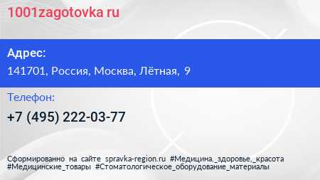 1001zagotovka.ru по адресу 141701, Россия, Москва, Лётная, 9 в дальнейшем Организация, размещена в следующих категориях:
