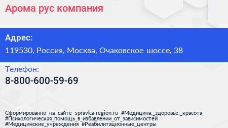 Арома.рус, компания по адресу 119530, Россия, Москва, Очаковское шоссе, 38 в дальнейшем Организация, размещена в следующих категориях:
