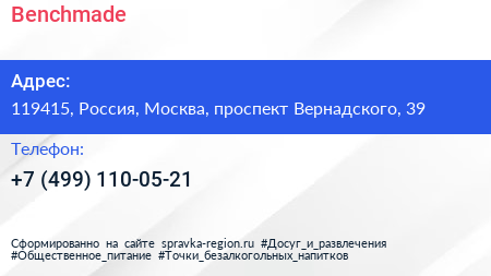 Benchmade по адресу 119415, Россия, Москва, проспект Вернадского, 39 в дальнейшем Организация, размещена в следующих категориях: