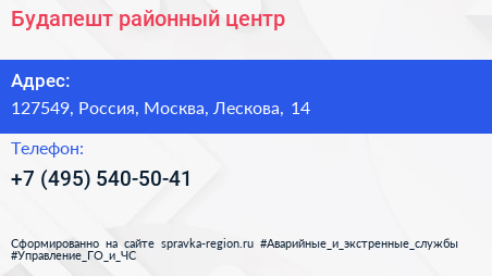 Будапешт, районный центр по адресу 127549, Россия, Москва, Лескова, 14 в дальнейшем Организация, размещена в следующих категориях: