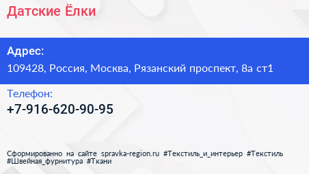 Датские Ёлки по адресу 109428, Россия, Москва, Рязанский проспект, 8а ст1 в дальнейшем Организация, размещена в следующих категориях: