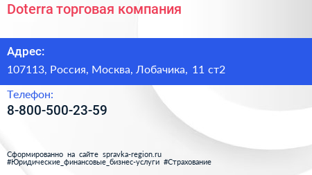 Doterra, торговая компания по адресу 107113, Россия, Москва, Лобачика, 11 ст2 в дальнейшем Организация, размещена в следующих категориях: