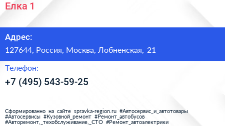 Елка №1 по адресу 127644, Россия, Москва, Лобненская, 21 в дальнейшем Организация, размещена в следующих категориях: