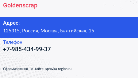 Goldenscrap по адресу 125315, Россия, Москва, Балтийская, 15 в дальнейшем Организация, размещена в следующих категориях: