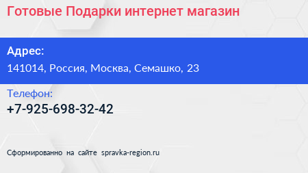 Готовые Подарки, интернет-магазин по адресу 141014, Россия, Москва, Семашко, 23 в дальнейшем Организация, размещена в следующих категориях: