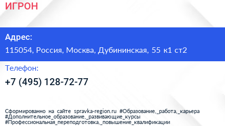 ИГРОН по адресу 115054, Россия, Москва, Дубининская, 55 к1 ст2 в дальнейшем Организация, размещена в следующих категориях: