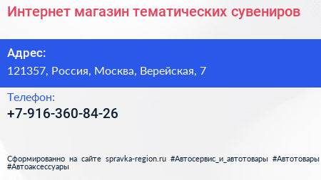Интернет-магазин тематических сувениров по адресу 121357, Россия, Москва, Верейская, 7 в дальнейшем Организация, размещена в следующих категориях: