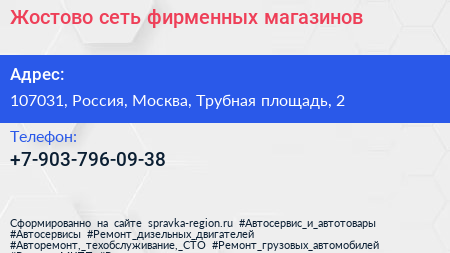 Жостово, сеть фирменных магазинов по адресу 107031, Россия, Москва, Трубная площадь, 2 в дальнейшем Организация, размещена в следующих категориях: