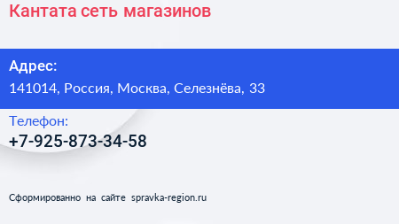 Кантата, сеть магазинов по адресу 141014, Россия, Москва, Селезнёва, 33 в дальнейшем Организация, размещена в следующих категориях: