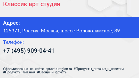 Классик, арт-студия по адресу 125371, Россия, Москва, шоссе Волоколамское, 89 в дальнейшем Организация, размещена в следующих категориях: