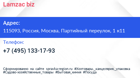 Lamzac.biz по адресу 115093, Россия, Москва, Партийный переулок, 1 к11 в дальнейшем Организация, размещена в следующих категориях: