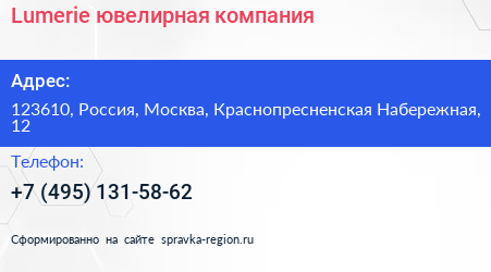 Lumerie, ювелирная компания по адресу 123610, Россия, Москва, Краснопресненская Набережная, 12 в дальнейшем Организация, размещена в следующих категориях: