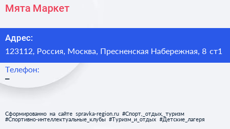 Мята Маркет по адресу 123112, Россия, Москва, Пресненская Набережная, 8 ст1 в дальнейшем Организация, размещена в следующих категориях: