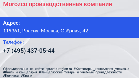 Morozco, производственная компания по адресу 119361, Россия, Москва, Озёрная, 42 в дальнейшем Организация, размещена в следующих категориях: