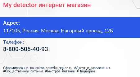 My detector, интернет-магазин по адресу 117105, Россия, Москва, Нагорный проезд, 12Б в дальнейшем Организация, размещена в следующих категориях: