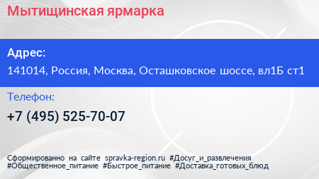 Мытищинская ярмарка по адресу 141014, Россия, Москва, Осташковское шоссе, вл1Б ст1 в дальнейшем Организация, размещена в следующих категориях: