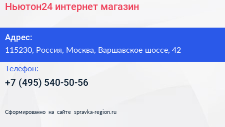 Ньютон24, интернет-магазин по адресу 115230, Россия, Москва, Варшавское шоссе, 42 в дальнейшем Организация, размещена в следующих категориях: