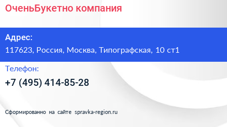 ОченьБукетно, компания по адресу 117623, Россия, Москва, Типографская, 10 ст1 в дальнейшем Организация, размещена в следующих категориях: