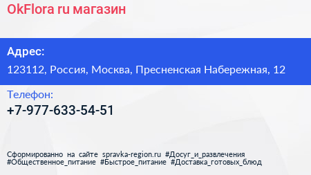 OkFlora.ru, магазин по адресу 123112, Россия, Москва, Пресненская Набережная, 12 в дальнейшем Организация, размещена в следующих категориях:
