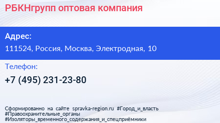 РБКНгрупп, оптовая компания по адресу 111524, Россия, Москва, Электродная, 10 в дальнейшем Организация, размещена в следующих категориях: