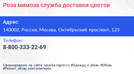 Роза-мимоза, служба доставки цветов по адресу 140002, Россия, Москва, Октябрьский проспект, 123 в дальнейшем Организация, размещена в следующих категориях: