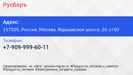 РусБеръ по адресу 117105, Россия, Москва, Варшавское шоссе, 26 ст10 в дальнейшем Организация, размещена в следующих категориях: