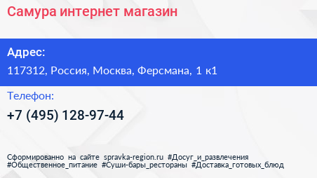 Самура, интернет-магазин по адресу 117312, Россия, Москва, Ферсмана, 1 к1 в дальнейшем Организация, размещена в следующих категориях:
