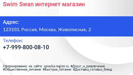 Swim Swan, интернет-магазин по адресу 123103, Россия, Москва, Живописная, 2 в дальнейшем Организация, размещена в следующих категориях: