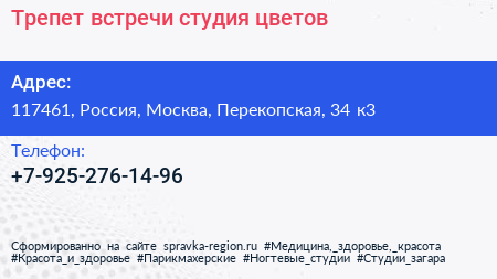Трепет встречи, студия цветов по адресу 117461, Россия, Москва, Перекопская, 34 к3 в дальнейшем Организация, размещена в следующих категориях: