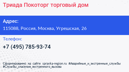 Триада Покоторг, торговый дом по адресу 115088, Россия, Москва, Угрешская, 26 в дальнейшем Организация, размещена в следующих категориях:
