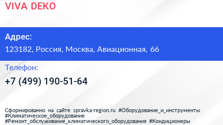 VIVA-DEKO по адресу 123182, Россия, Москва, Авиационная, 66 в дальнейшем Организация, размещена в следующих категориях: