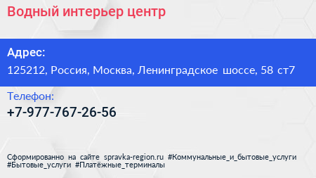 Водный, интерьер-центр по адресу 125212, Россия, Москва, Ленинградское шоссе, 58 ст7 в дальнейшем Организация, размещена в следующих категориях: