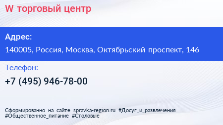 W, торговый центр по адресу 140005, Россия, Москва, Октябрьский проспект, 146 в дальнейшем Организация, размещена в следующих категориях:
