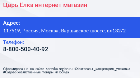 Царь Ёлка, интернет-магазин по адресу 117519, Россия, Москва, Варшавское шоссе, вл132/2 в дальнейшем Организация, размещена в следующих категориях: