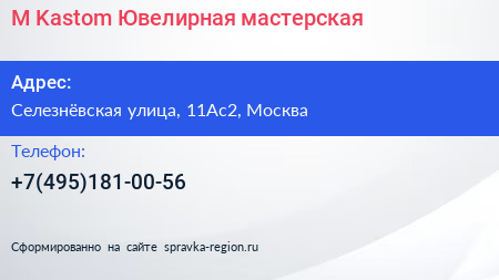 M.Kastom - Ювелирная мастерская по адресу Селезнёвская улица, 11Ас2, Москва в дальнейшем Организация, размещена в следующих категориях: