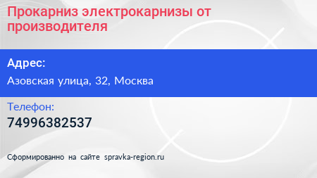 Прокарниз- электрокарнизы от производителя по адресу Азовская улица, 32, Москва в дальнейшем Организация, размещена в следующих категориях: