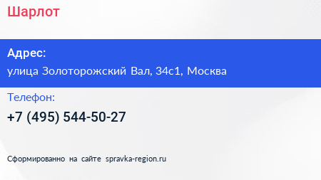Шарлот по адресу улица Золоторожский Вал, 34с1, Москва в дальнейшем Организация, размещена в следующих категориях: