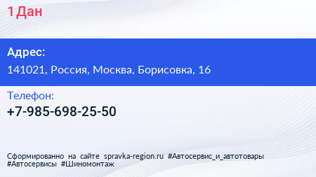 1 Дан по адресу 141021, Россия, Москва, Борисовка, 16 в дальнейшем Организация, размещена в следующих категориях: