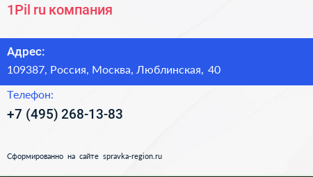 1Pil.ru, компания по адресу 109387, Россия, Москва, Люблинская, 40 в дальнейшем Организация, размещена в следующих категориях: