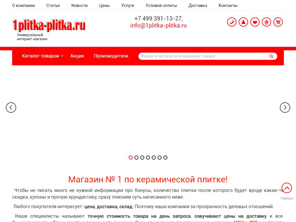 1plitka-plitka.ru, интернет-магазин по адресу 108820, Россия, Москва, Проектируемый 134-й проезд, к5 в дальнейшем Организация, размещена в следующих категориях: