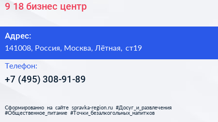 9-18, бизнес-центр по адресу 141008, Россия, Москва, Лётная, ст19 в дальнейшем Организация, размещена в следующих категориях: